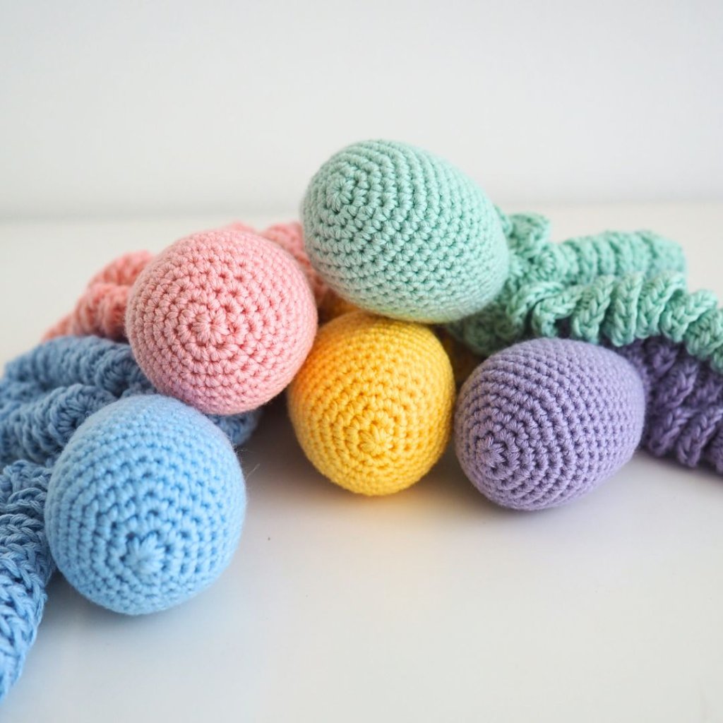 Háčkovaná hrkálka na drevenom krúžku Králiček Mint