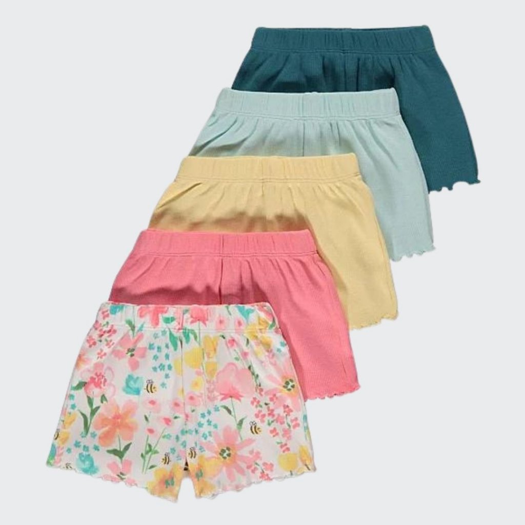 - Modré, tyrkysové, žluté, růžové a květované kraťasy v balení